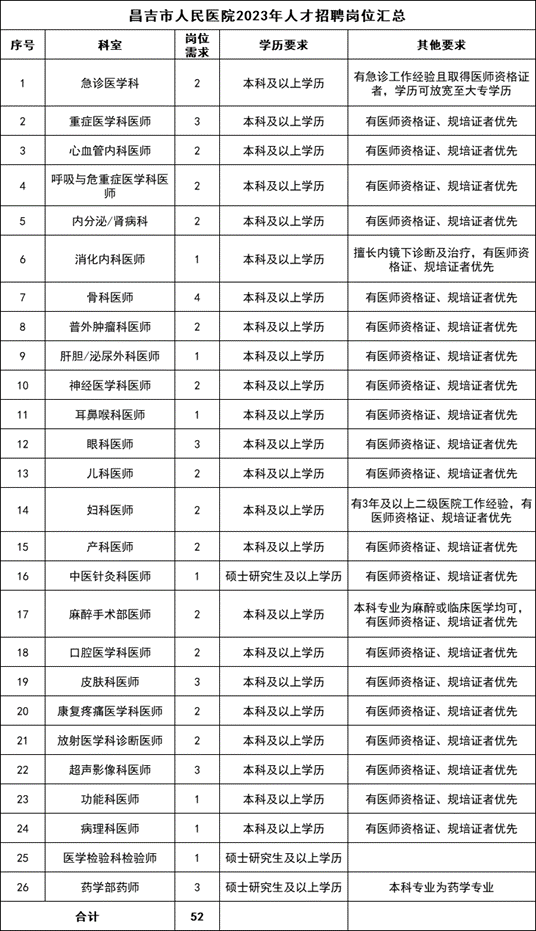 1、报名地址新疆昌吉市人民医院人事科