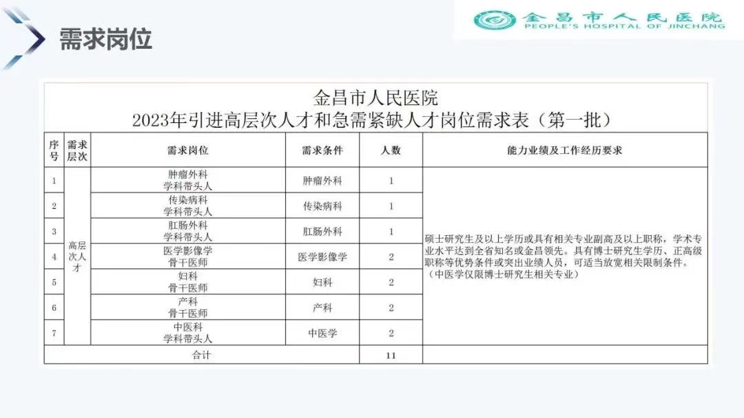 金昌市人民医院引进高层次和急需紧缺人才公告