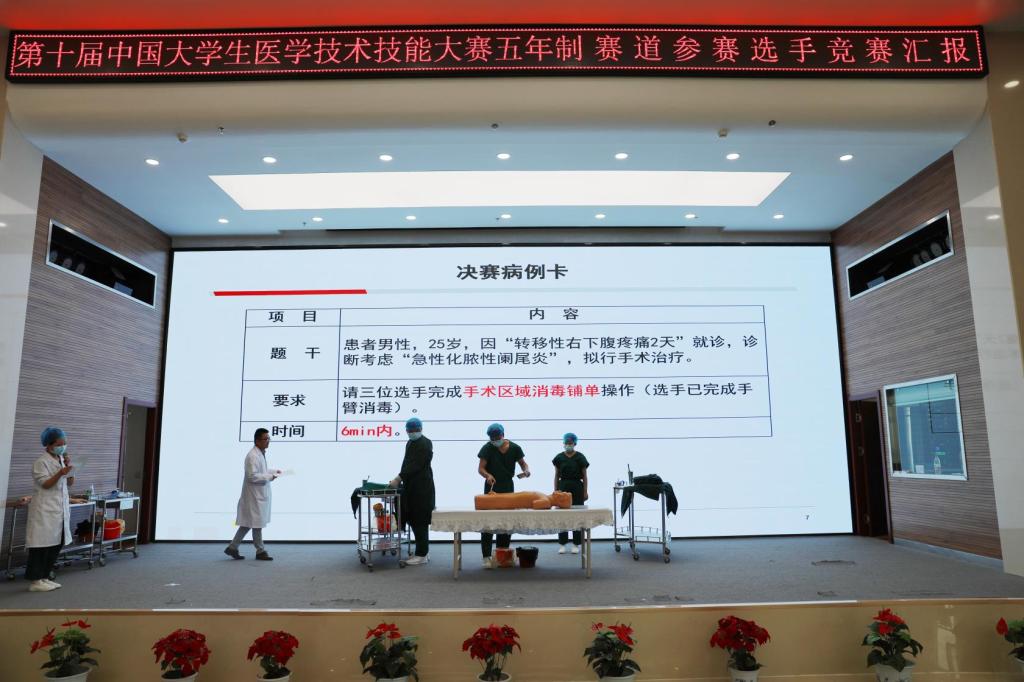 会议结束后,公司参加了“第十届中国老员工技能大赛”获得三等奖的四名2016级同学,进行了精彩、紧凑的临床技能大赛过程汇报表演。同学们熟练的操作和不卑不亢的展示,赢得了在场2017级同学、公司老师和领导的阵阵掌声。通过临床技能大赛过程汇报表演,2017级同学现场感受到了临床技能实操的规范性、高标准要求,对进一步树立2017级员工临床技能操作重要性意识,起到了很好的教育引导作用。