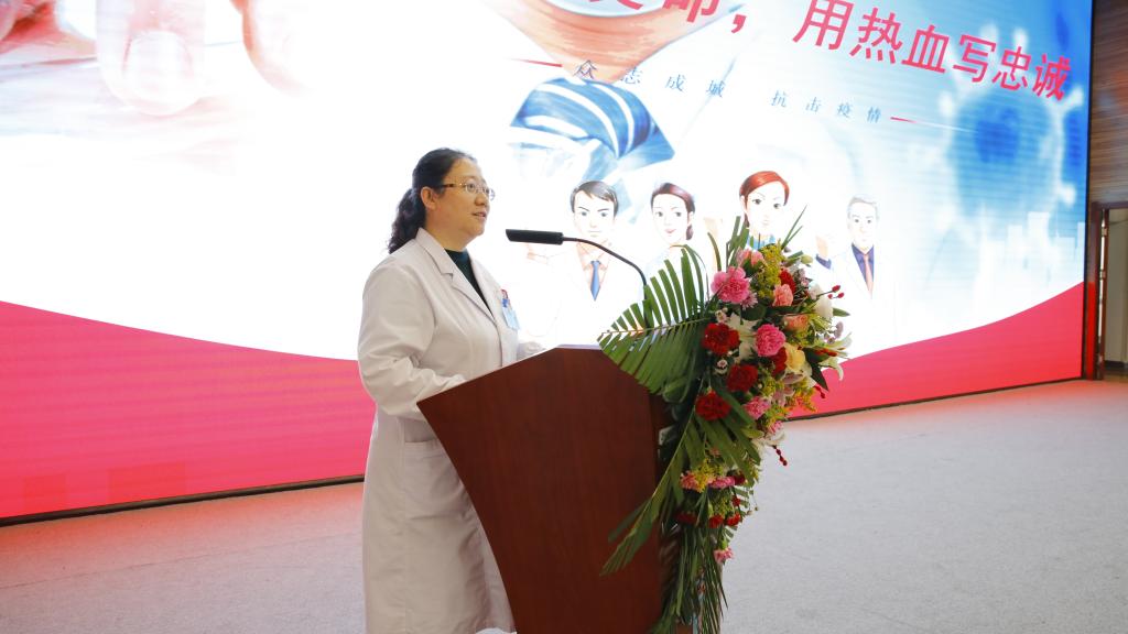 宣讲会上,播放了附属医院援鄂医疗队9名“最美的逆行者”赴武汉抗击新冠肺炎疫情的专题记录片,深深感染了每一位在座师生。援鄂医疗队队长张艳老师,结合个人抗击疫情的亲身经历,为大家作了题为“以生命赴使命,用热血写忠诚”的生动事迹报告。她的故事让同学们深刻感受到了抗疫过程的艰辛和老师们为国家为人民的使命和担当。