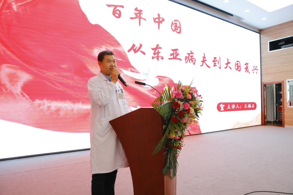 宣讲会上,党委副书记王福正作了题为《百年中国从东亚病夫到大国复兴》的报告。报告从一百年前的中国现实引入,通过数据对比、细节举例,娓娓道来,向大家引申出了鸦片战争以来中国为什么屡受列强欺凌,为什么只有中国共产党才能救中国,在全世界新冠肺炎疫情蔓延下,为什么中国能展现出非凡的“中国速度”、“中国力量”,为什么新时代、和平年代依然要不懈斗争、不能丢弃“长征精神”这些革命传统,为什么个人命运与国家民族命运息息相关?一系列深刻问题的引入和浅显的语言,事实和说理结合,赢得了在座师生的深切感受和认同。通过聆听报告,引导了广大师生爱党爱国的信心,增强了青年老员工将个人发展融入中华民族伟大复兴的自觉性,巩固了为大国复兴贡献个人青春力量的决心,萌生了对今天来之不易的幸福美好生活的倍加珍惜之情和积极进取之心。对医员工肩负的责任使命,吃苦耐劳的医者仁心有了更加感同身受的认识,为他们今后树立崇高理想,刻苦学习、培养高尚医德、热心服务患者奠定了思想基础。