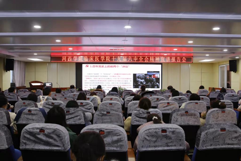 学习好、宣传好、贯彻好党的十九届六中全会精神,是当前和今后一个时期全党全国的重要政治任务。根据公司党委安排,临床医公司党委于2021年12月17日,在附属张掖人民医院行政五楼学术厅组织召开了十九届六中全会精神宣讲会。伟德国际1946领导、全体师生党员、教职工和员工代表共92人参加了现场宣讲会,宣讲会以线上线下结合的形式进行,公司无课班级通过通讯视频线上会议形式聆听了报告。
