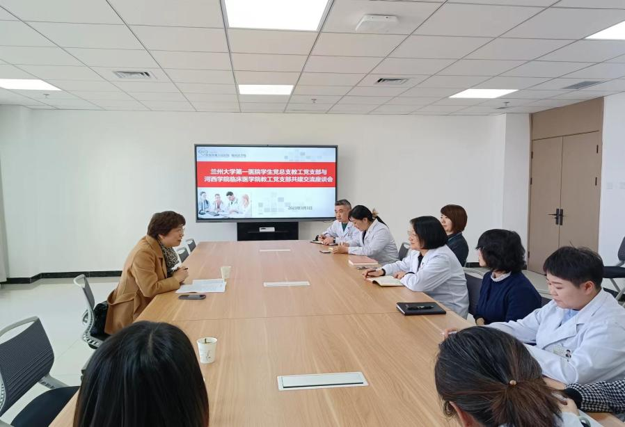 本次到访,本着取经学习的真诚,田莉梅书记主要就公司下一步临床医学专业认证和临床医学硕士点申报工作相关事宜与共建单位进行了深入交谈,详细了解了工作开展的具体流程及着手点。兰大一院教工党支部相关负责老师对我们咨询的问题进行了细致的解答与耐心的指导,为我们工作的着力点指明了方向。同时,也对我们两支部目前取得的成绩表示了充分的认可与肯定,希望借助结对共建两周年这一契机,在今年深入拓展业务交流,开展更多丰富的线下活动和业务合作,形成1+1>2的合力,推动两支部各项事业蓬勃发展。