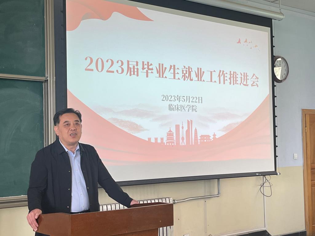 2023年5月22日下午,在伟德国际1946集团医公司新校区第四阶梯教室召开了2023届毕业生就业工作推进会,公司领导班子、全体教职工、附属人民医院规培办及2023届未就业员工参加本次会议,会议由党委副书记王福正主持。