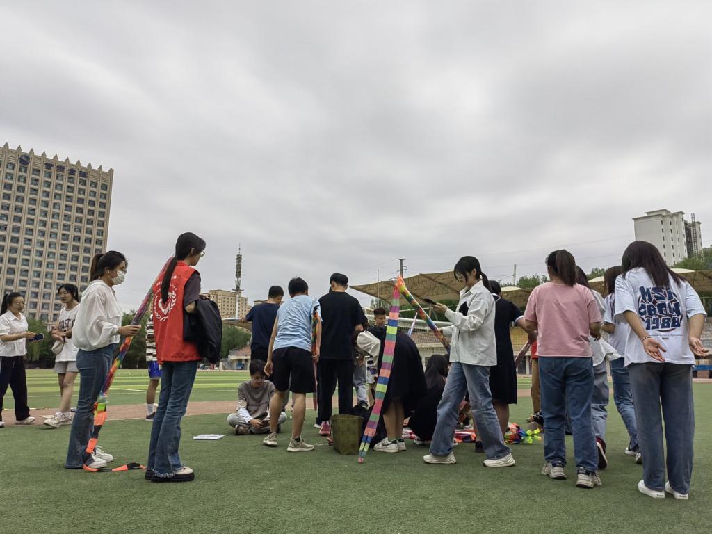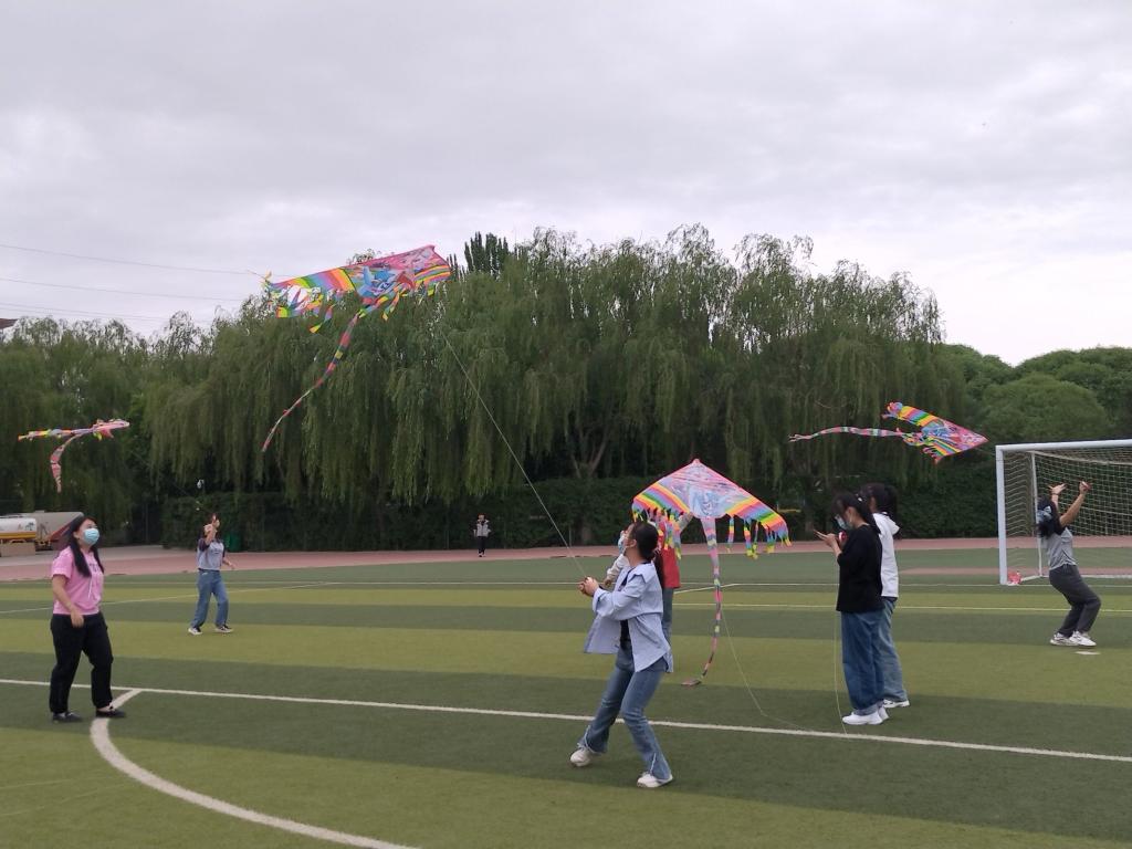 活动开始后,大家领到了各自的风筝,两两一组,选择了开阔的地方开始放风筝。趁着一阵阵的风吹过,同学们扬起手中的风筝,边跑边释放手中的风筝线。随着同学们的奔跑,风筝也逐渐飞上了天空。天空中飞着各种各样五颜六色的风筝,同学们脸上也洋溢着笑容。