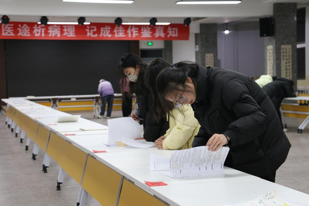 活动现场,一本本笔记整齐排列在展示台上。医学笔记各有特色。活动中,秉持公平公正公开原则,老师、同学们分别从从内容完整性、逻辑清晰度、创新点等多个维度进行评分,大家积极参与,认真履行评委职责,并对优秀笔记进行了观摩学习。
