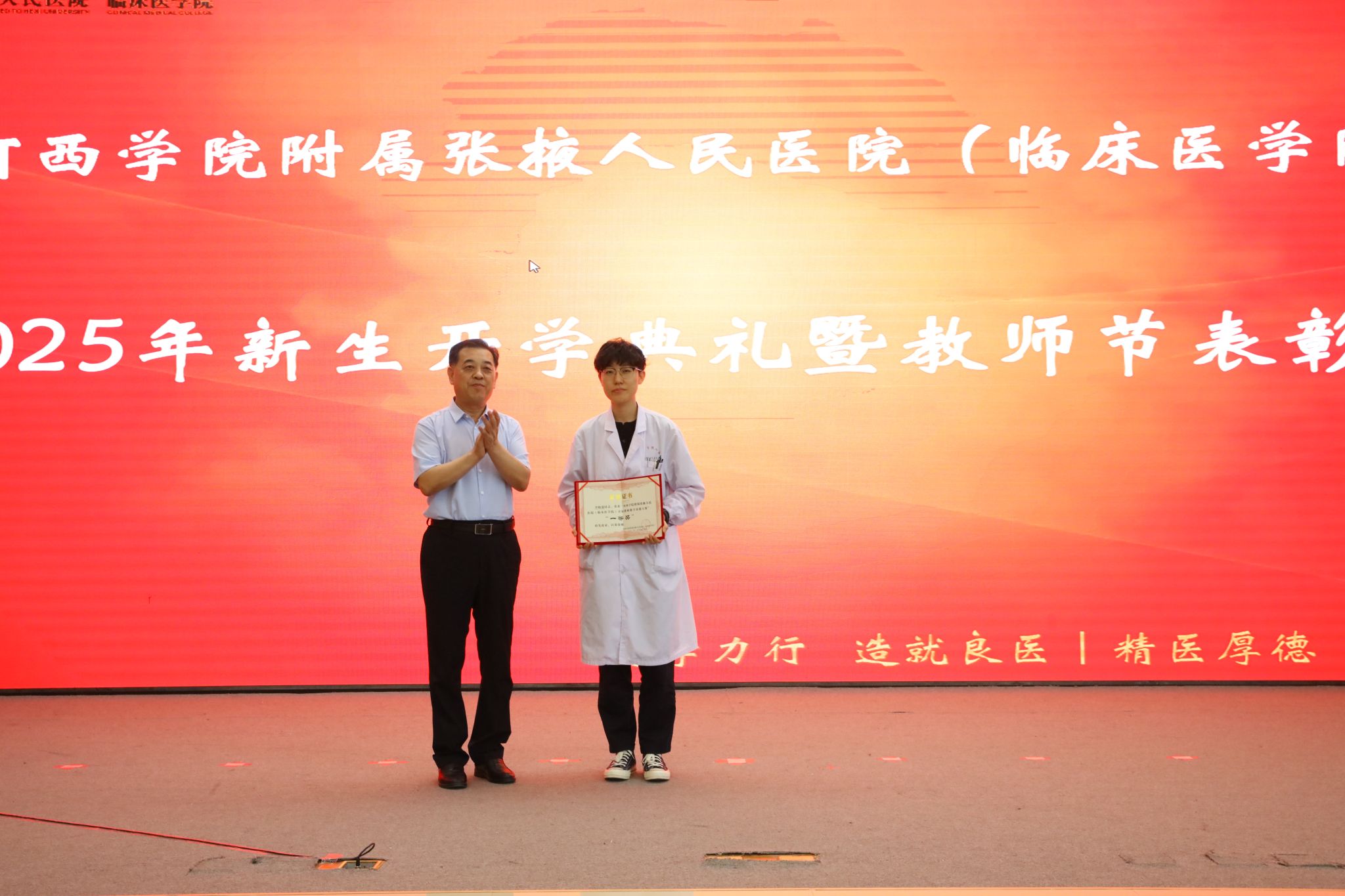 为优秀新生颁发荣誉证书