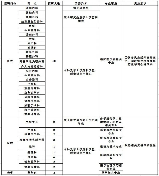 2、资格审核:医院对应聘者提供的报名材料进行资格审核,报名时如提供虚假材料的,一经查实,取消资格。